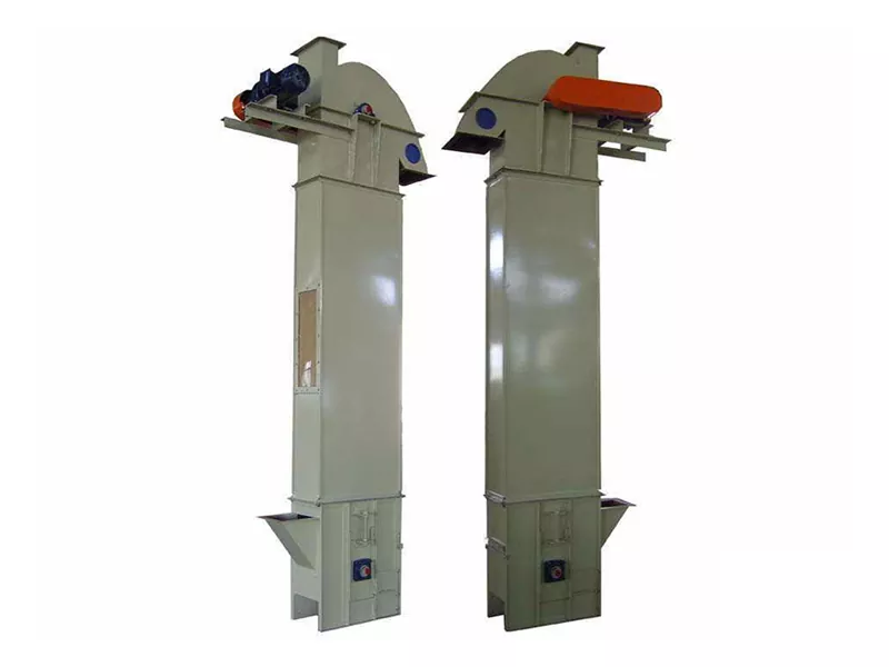 Бункерът загребва материала от съхранението отдолу и тъй като конвейерът или веригата се озовава до върха, той се превръща надолу, след като заобикаля крилото на колелото, а асансьорът на кофата завърта материала в приемащия слот. На задвижващото зъбно колело, под или по -горе е чифт смяна на зъбното колело, асансьорът на кофата е оборудван с корпус, за да се предотврати праха в асансьора на кофата.