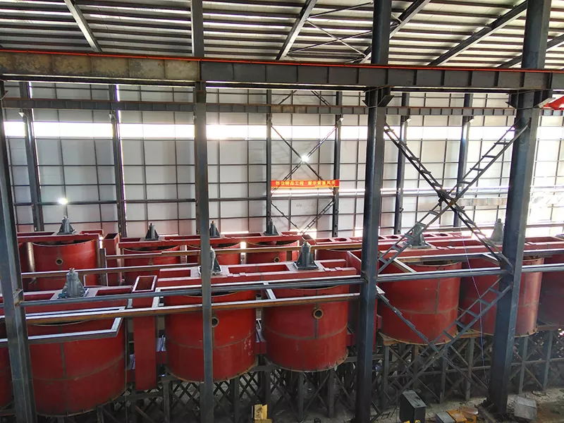 Srpski језик The Reagent Agitation Tank of the reagent is caried out by the stiring method o the radial cycle spiral turbomachinery,so that the reagent and the liquid are fully integrated.When the stiring tank works,the motor pulls the triangle belt transmission device to drive the impeller to rotate,and the drug mixes evenly under the uniform rotation of the impeller,so as to make necessary preparations for the mixing of pulp and drug in the next stage.